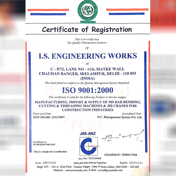 We I.S.ENGINEERING WORKS are a leading manufacturer, importer & exporter of a wide range of bar cutting machine, bar bending machine, monkey hoist/crane, material lift/hoist, builder hoist, hanging platform/suspended platform/cradle, ring making machine, walk behind/ride on vibrating roller, plate compactor, concrete mix related m/c, concrete cutter, nozzle & vibrator etc machines, also provide an after sale service within hours in delhi ncr & according travel time in all over india.
